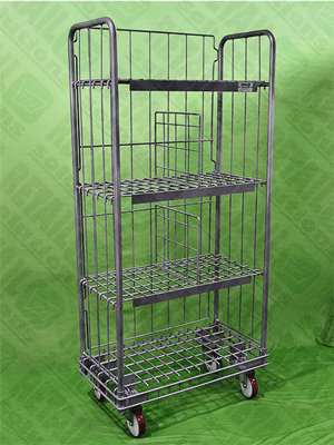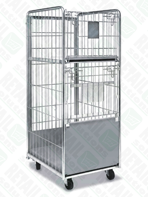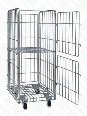 The side panels fit securely into ready-made slots on the base unit and are equally easy to remove. Jumbo Roll cage includes a shelf which can be arranged in a v-shaped position for goods safety.