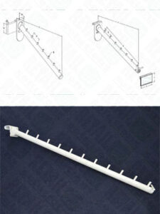The Straight Arm Tube Hanger with Label Holder is a sleek and practical display solution designed for seamless integration with support bars.